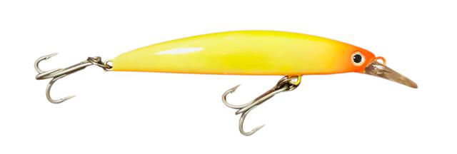 Shallow diving jerkbait 3/4 oz.5 inches long for when you need a smaller bait. Rigged with #1 size 6X strength trebles.