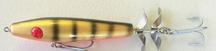 This 5 inch lure is built to hold up where others made with eyes screws may fail as there are no eye screws in this ripper. Made with thru wire construction. Belly hook is attached with 370 lb. Spro swivel. Large 1/2 inch diameter 3D eyes.Rigged with one belly hook; your choice of a single hook or treble.Available only with double props. $42.00